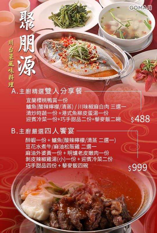 聚朋源 川台菜風味料理 - 138555是最近關注的一項還算不錯的商品,一樣是在Gomaji上發現的。我真的非常喜歡逛Gomaji,尤其很多東西價格都很不錯,也有不少優惠券可以用,下面是賣場提供的商品簡介: