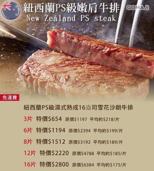 紐西蘭PS級濕式熟成16盎司雪花沙朗牛排 3片起 - 159127是最近關注的一項還算不錯的商品,一樣是在Gomaji上發現的。我真的非常喜歡逛Gomaji,尤其很多東西價格都很不錯,也有不少優惠券可以用,下面是賣場提供的商品簡介: